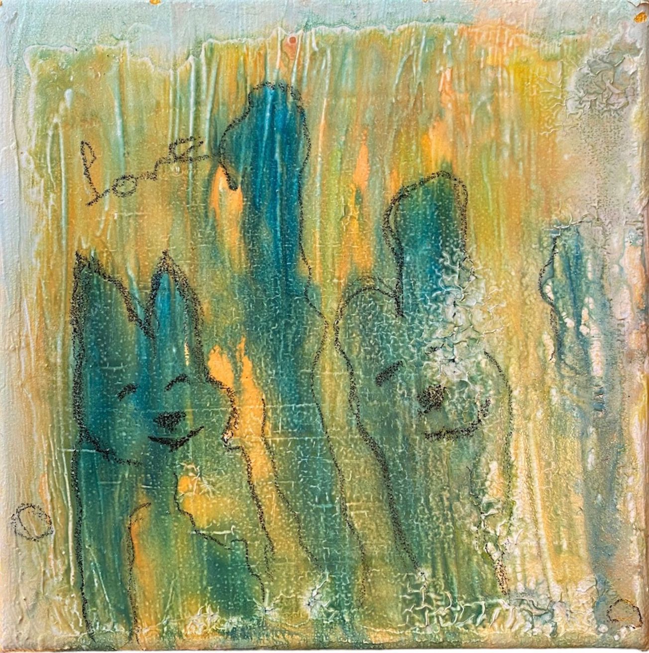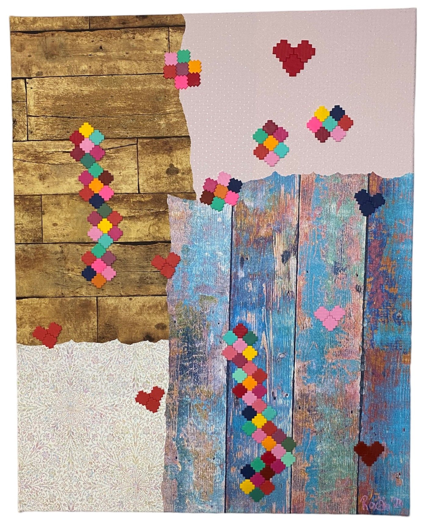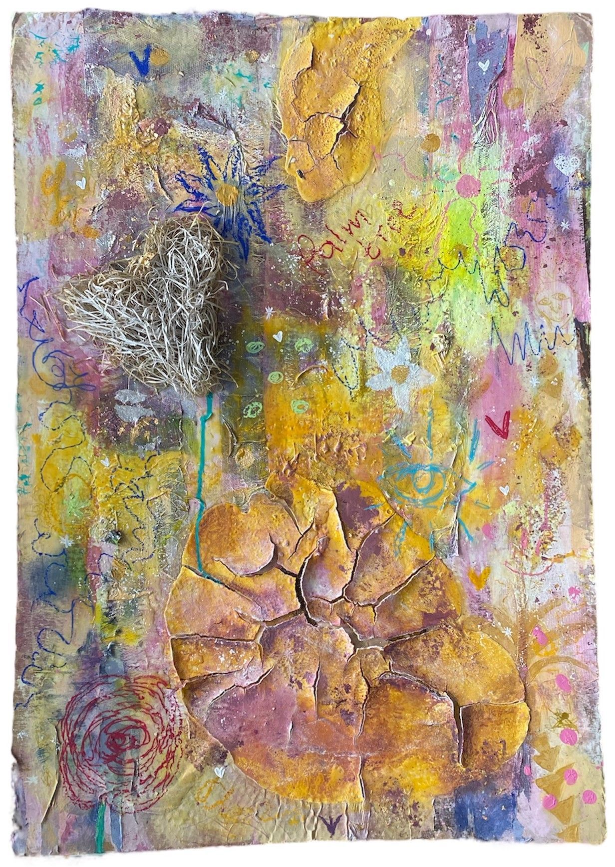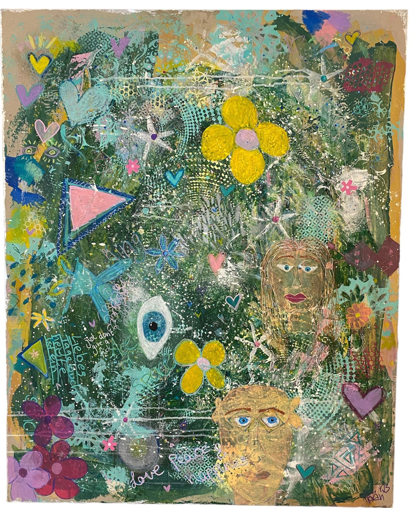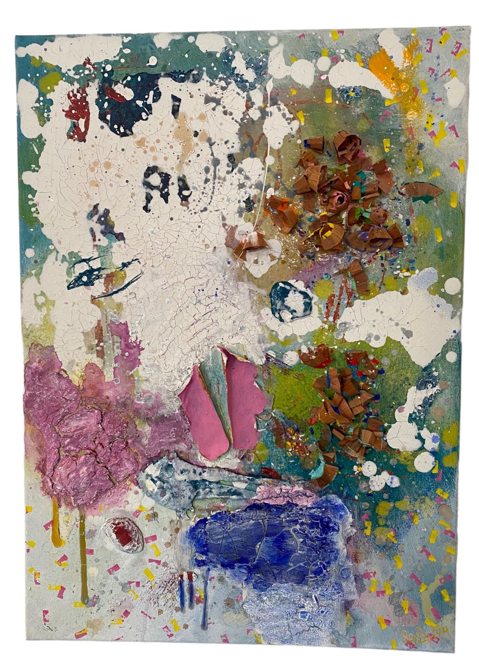 Mixed-Media, Papier, Acryl, Ölpastel auf Keilrahmen