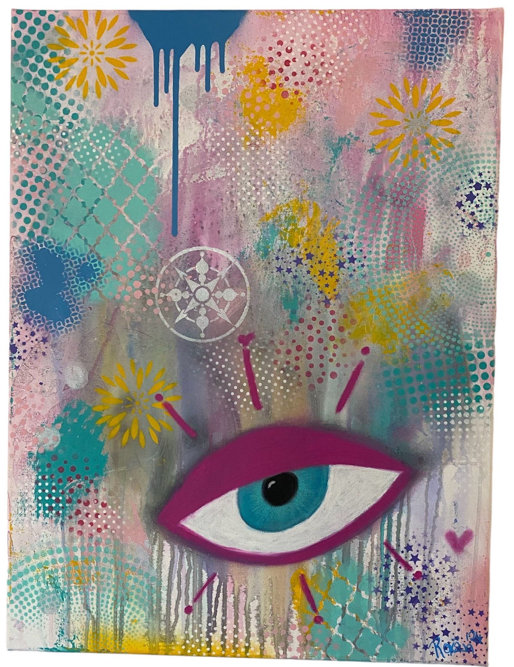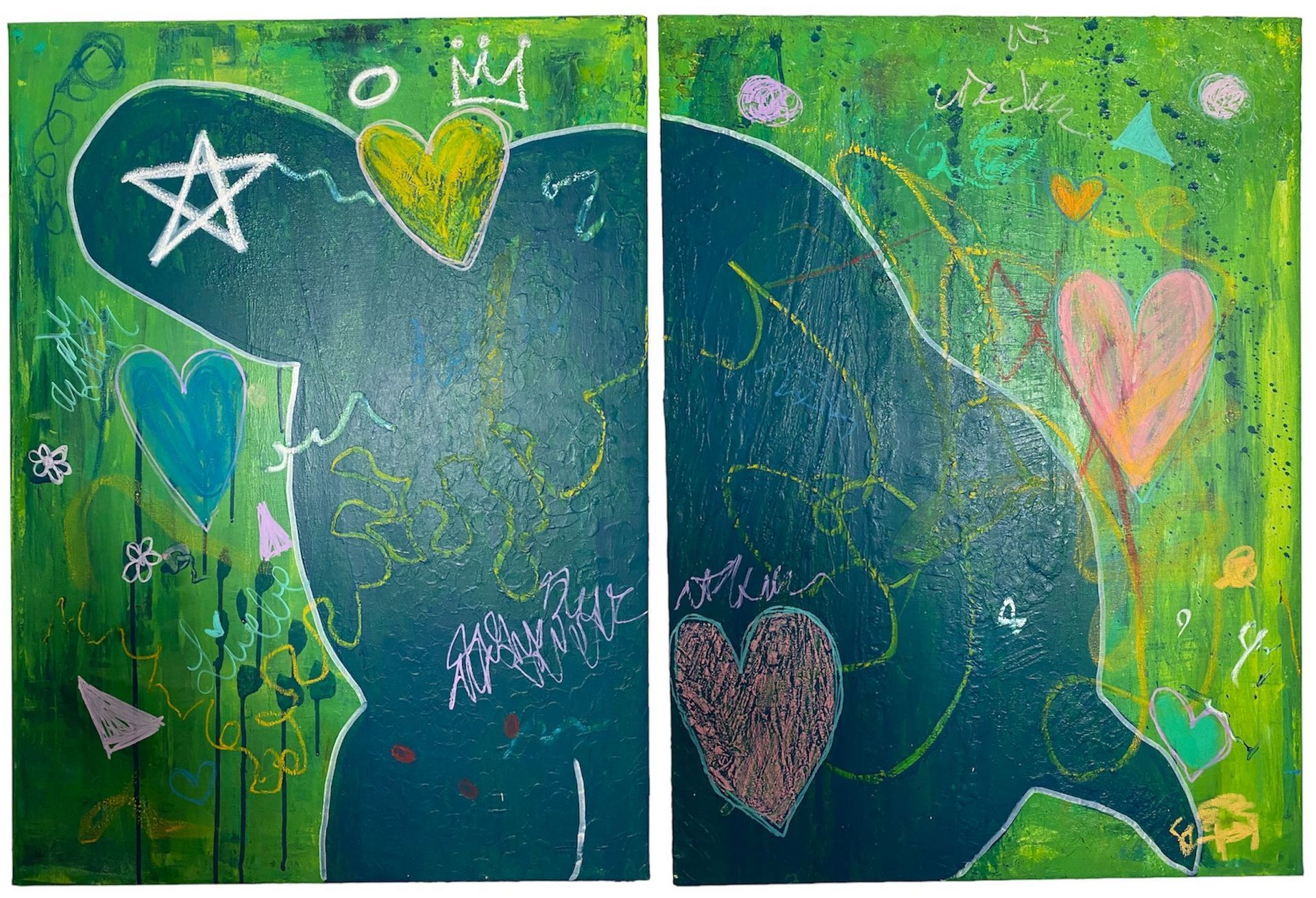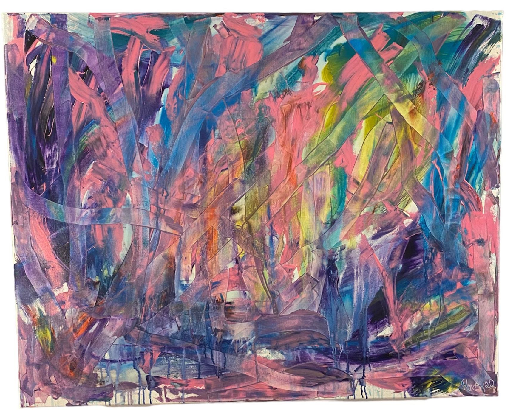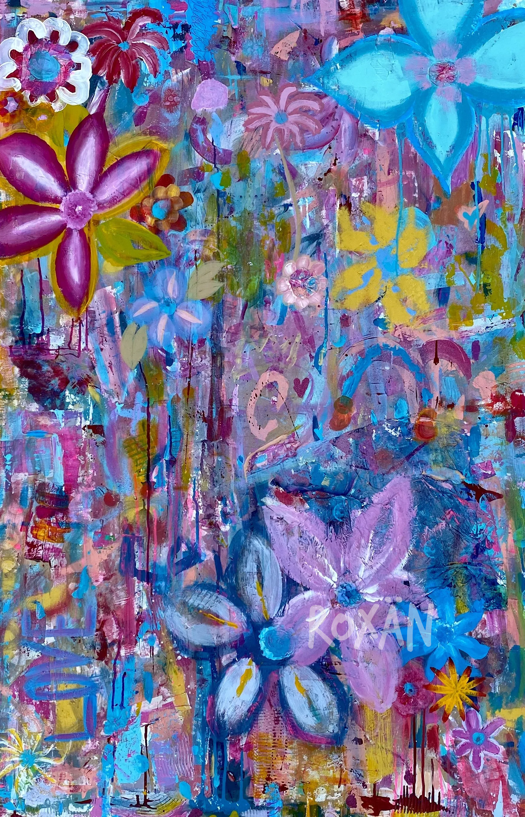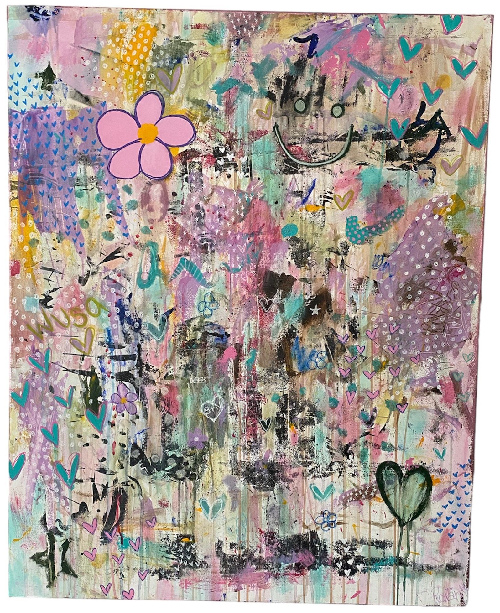 Mixed-Media, Papier, Acryl, Ölpastel auf Keilrahmen