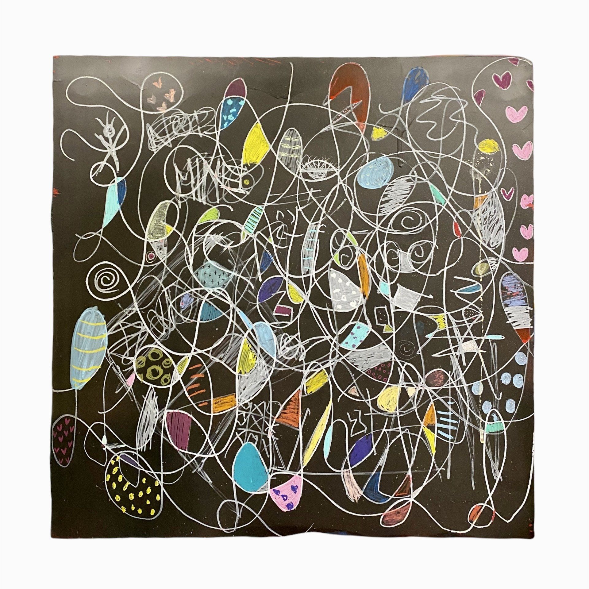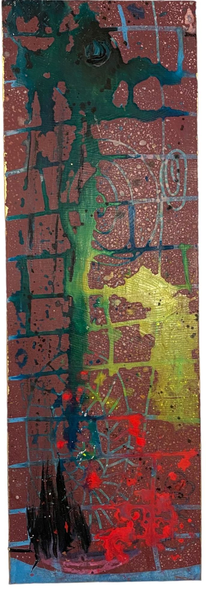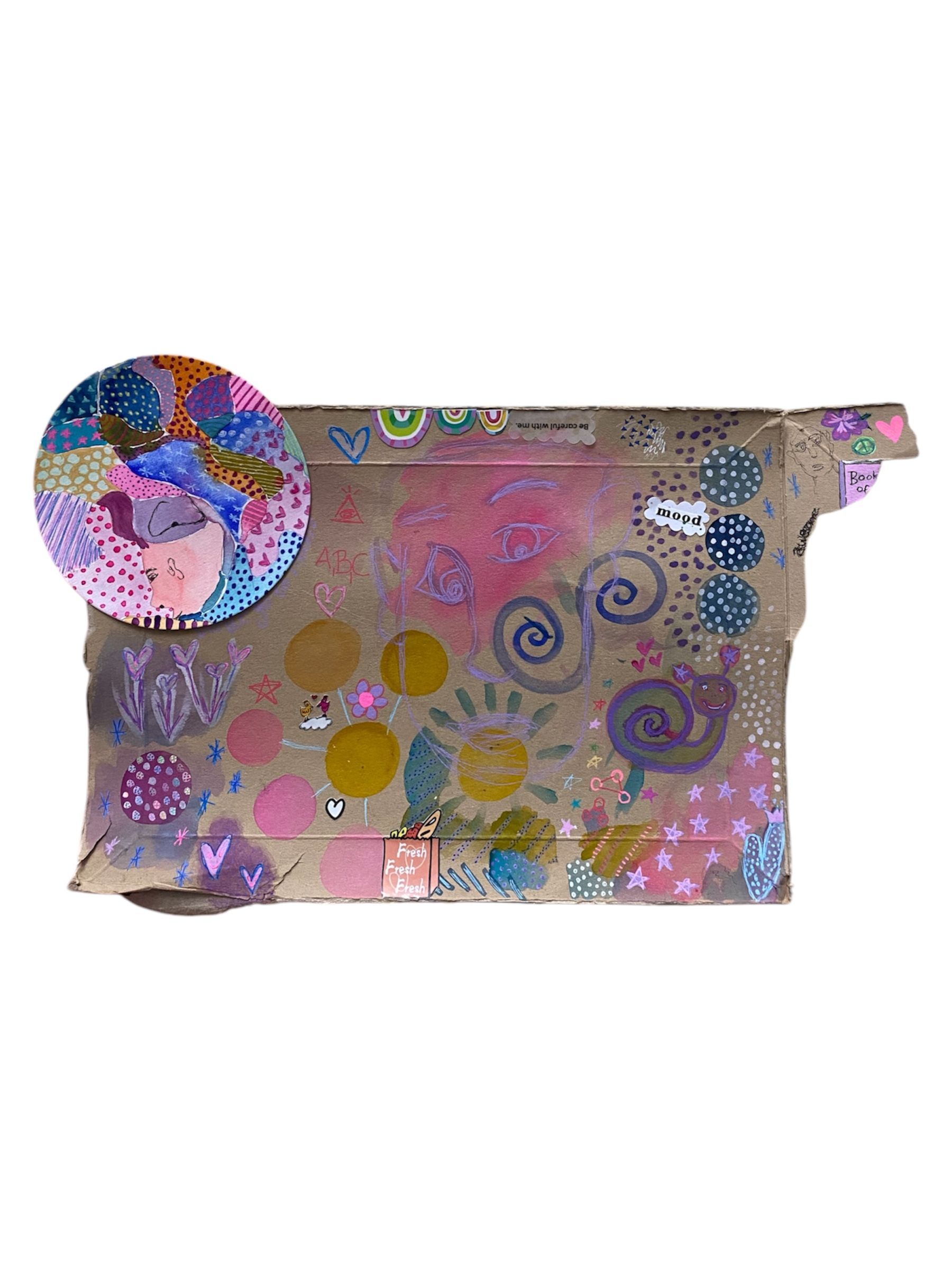 Mixed-Media, Acryl, Stifte, Ölpastel auf Holzplatte