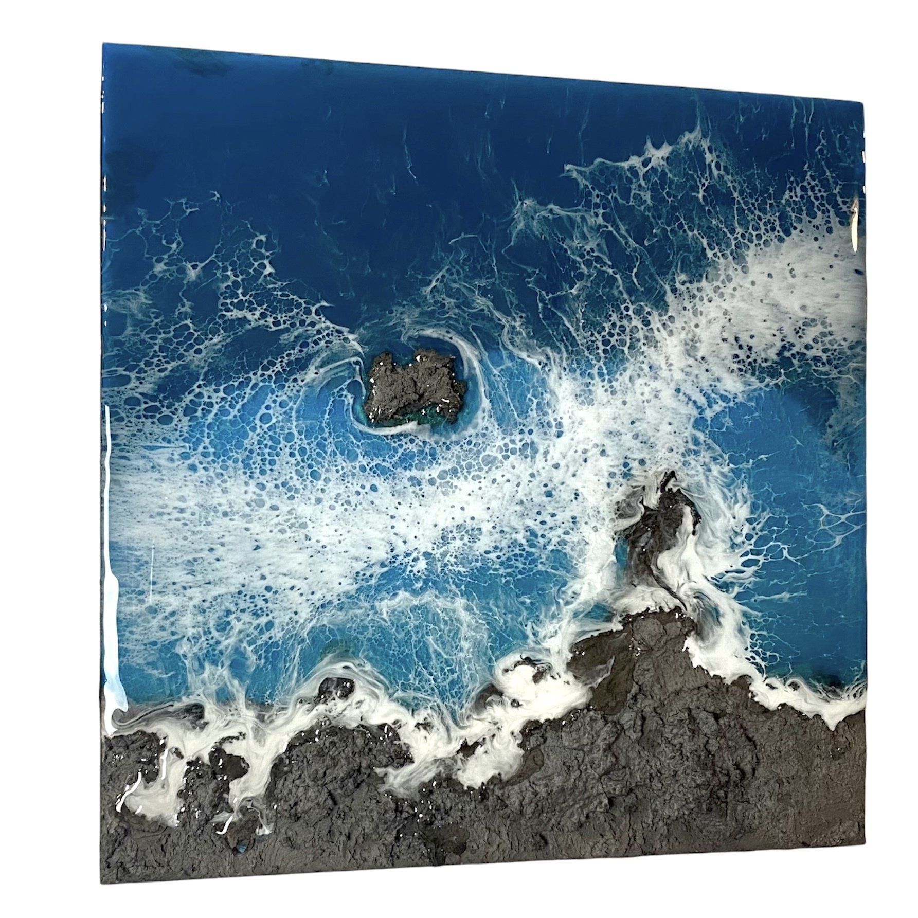 Mixed-Media, Struktur, Resin auf Holzmalgrund