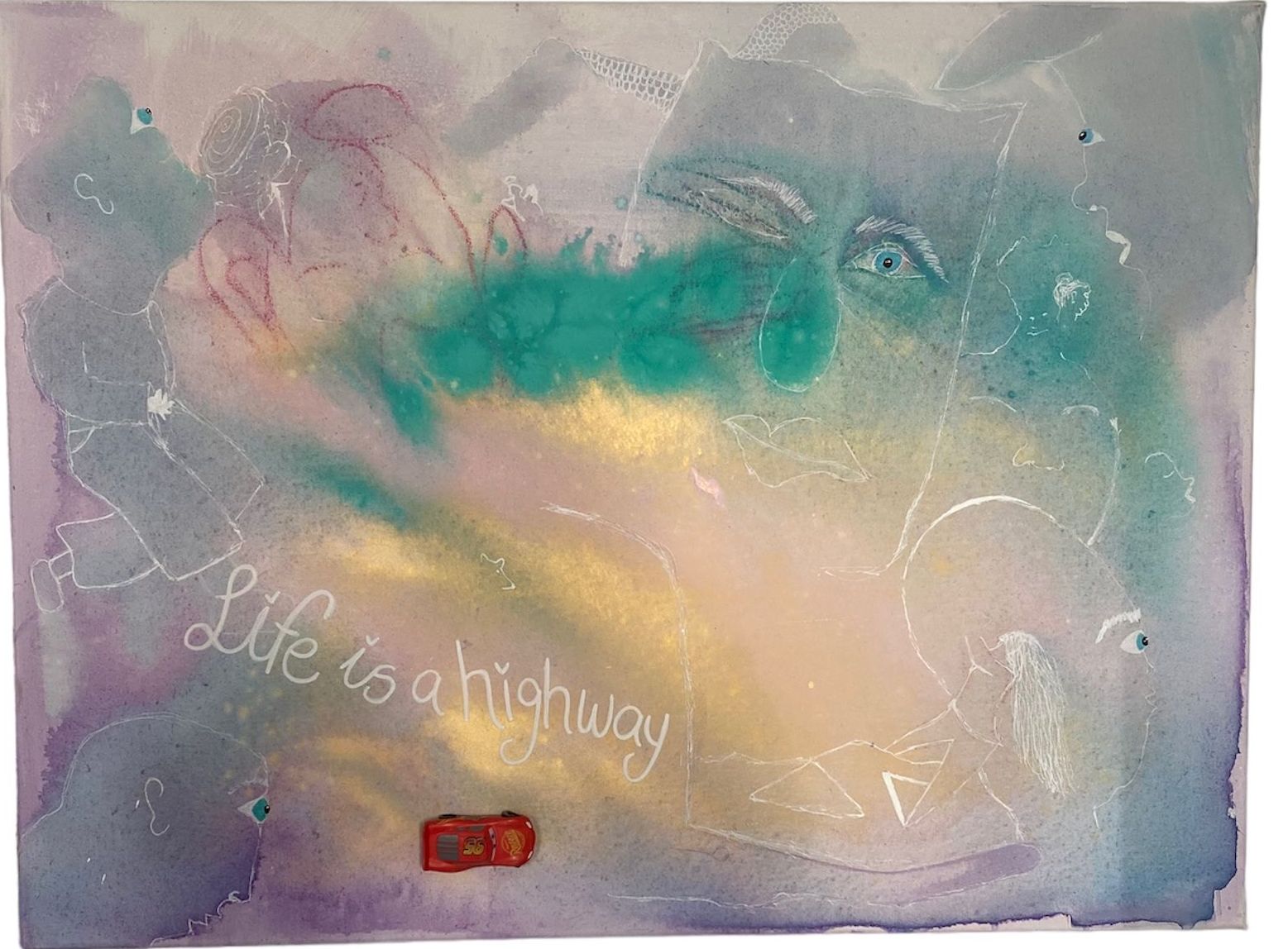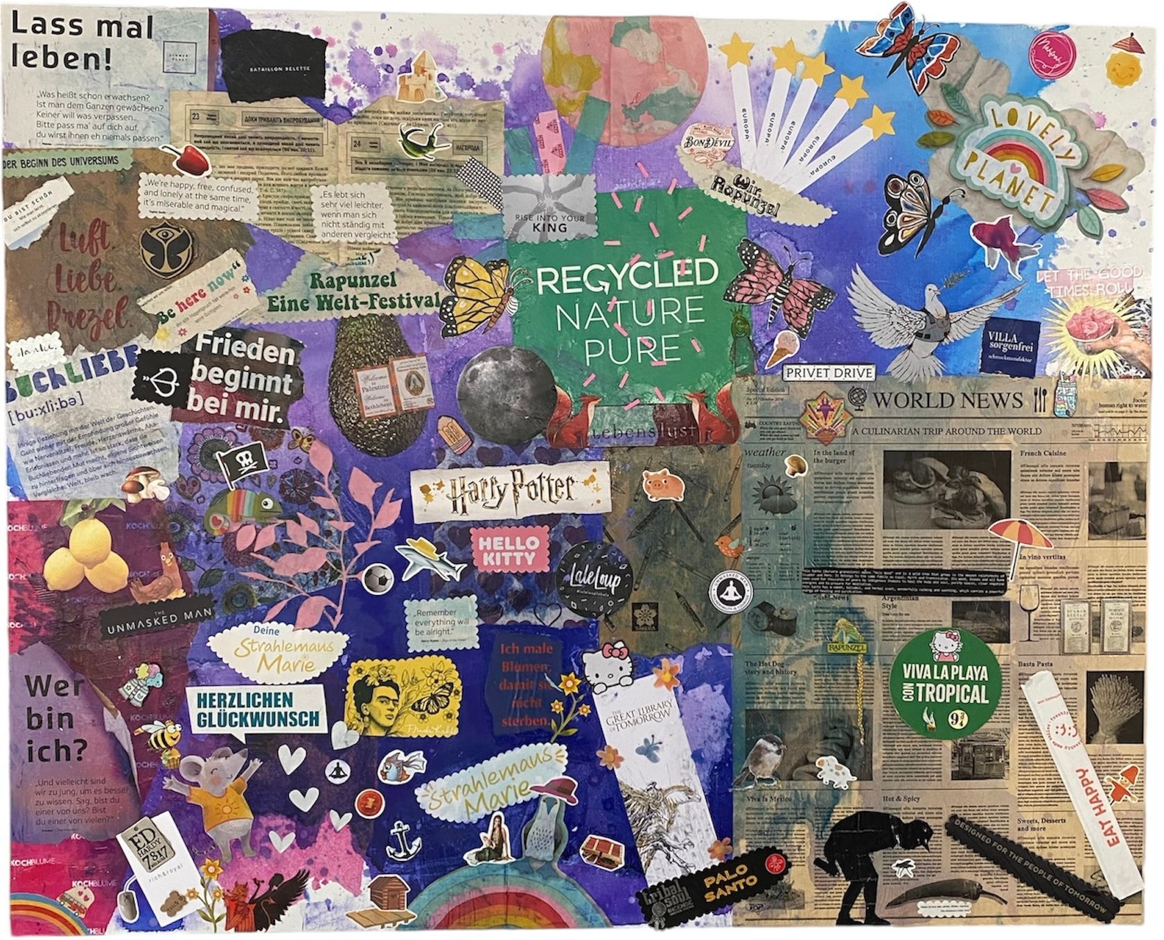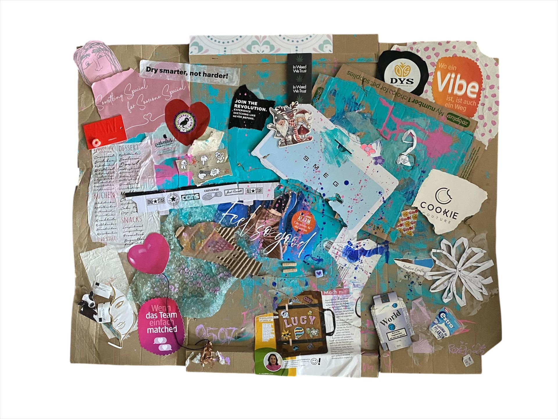 Mixed-media, Acryl, Ölpastelle, Stifte, Collage, Bootslack