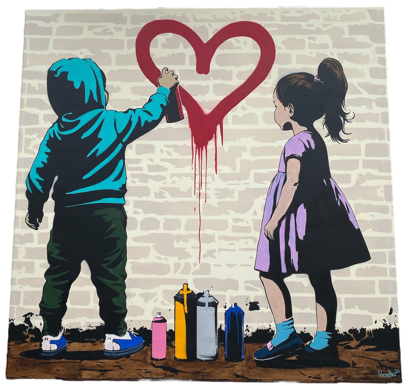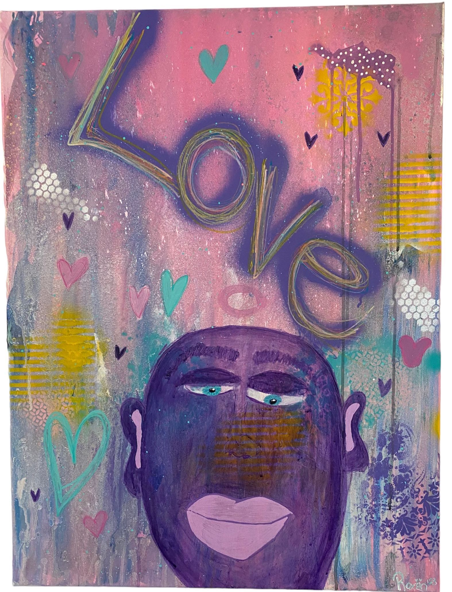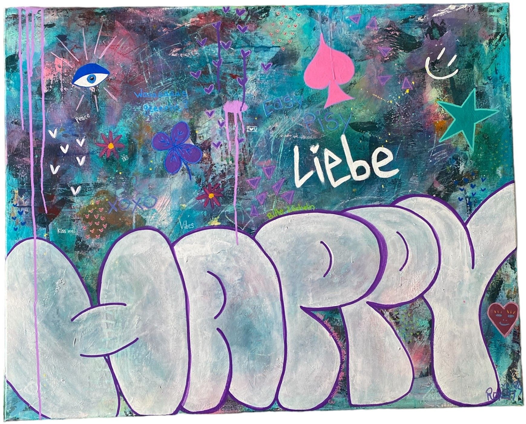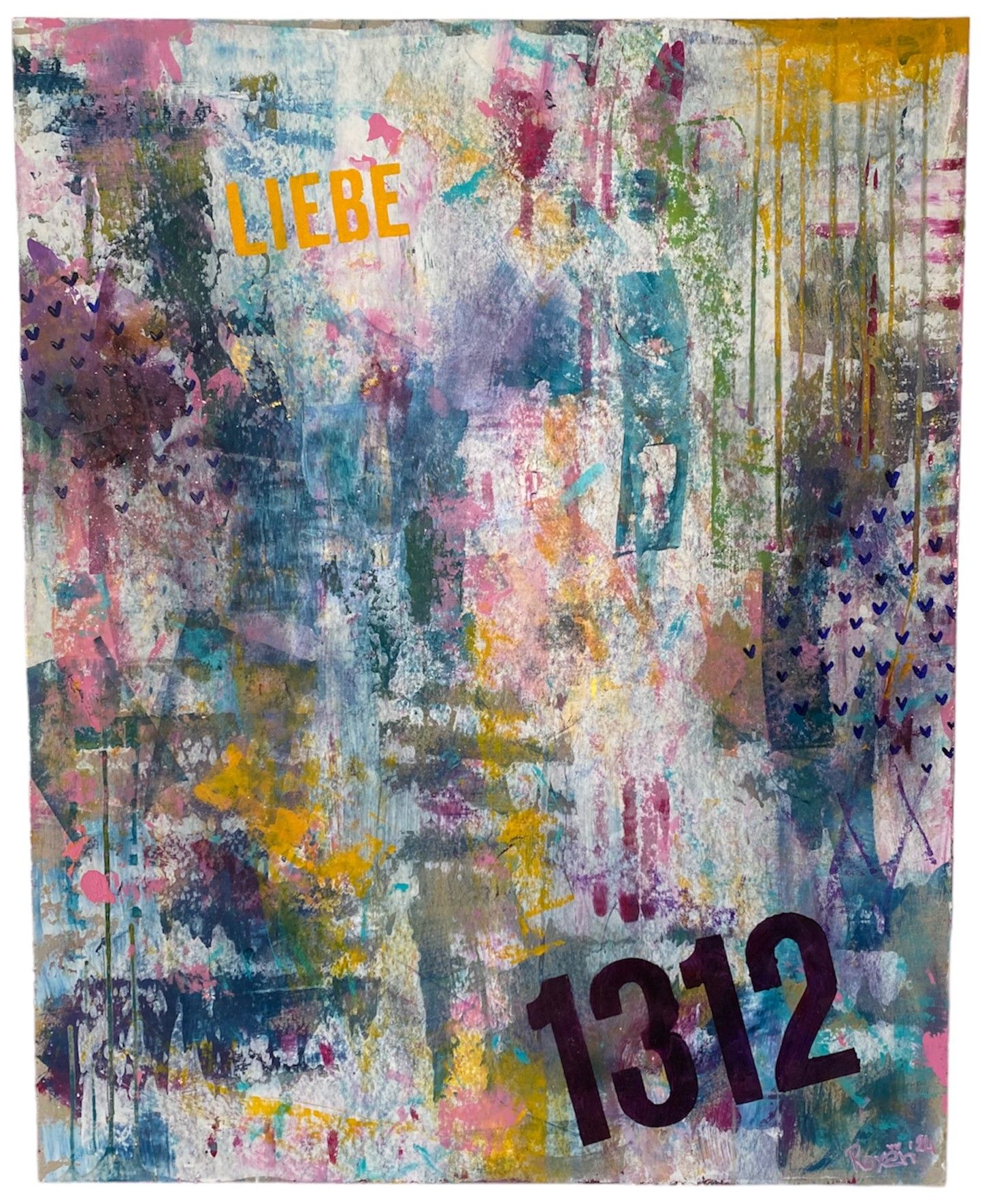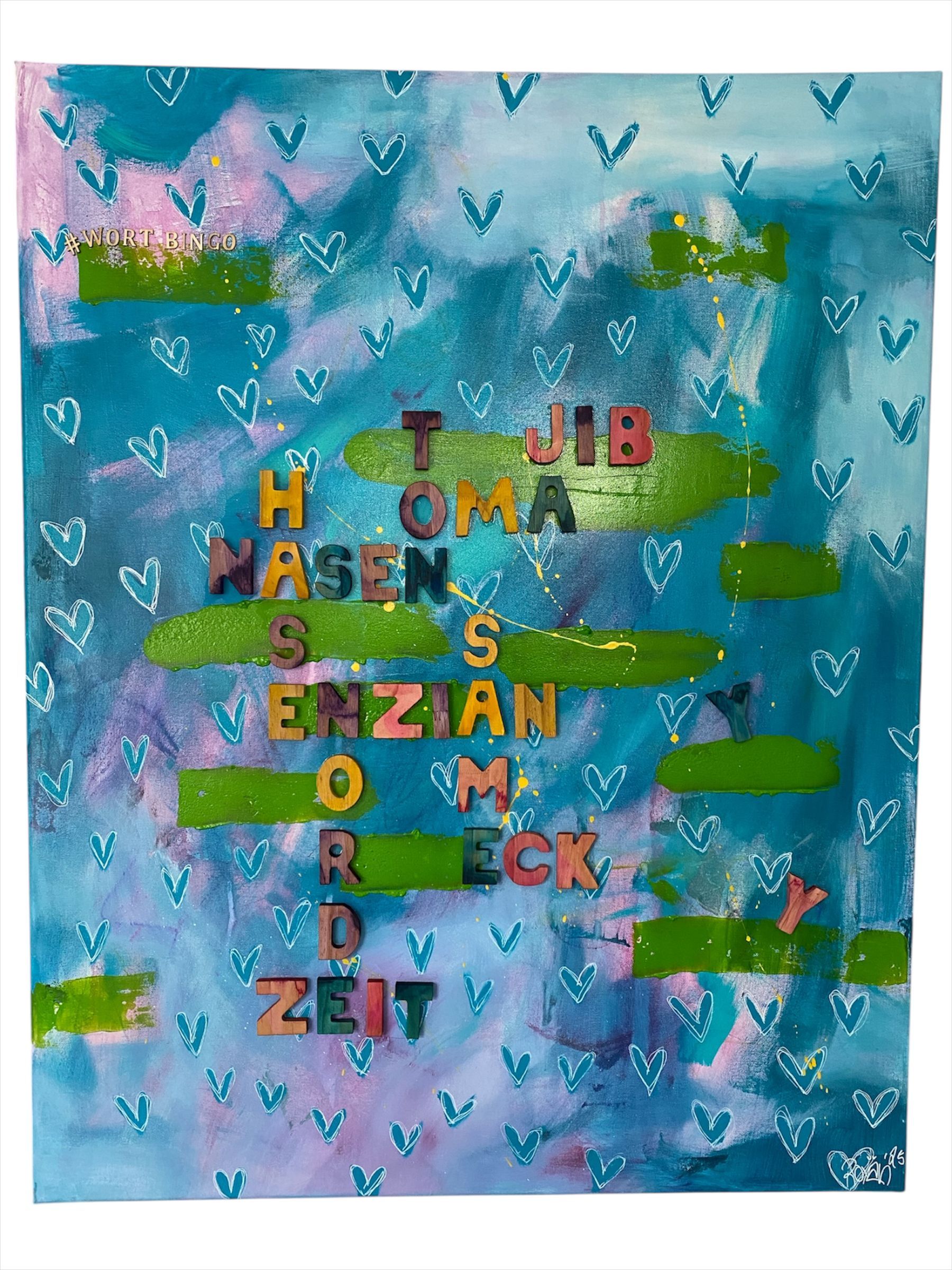 Mixed-media, Acryl, Stifte, Holzbuchstaben, Firnis
