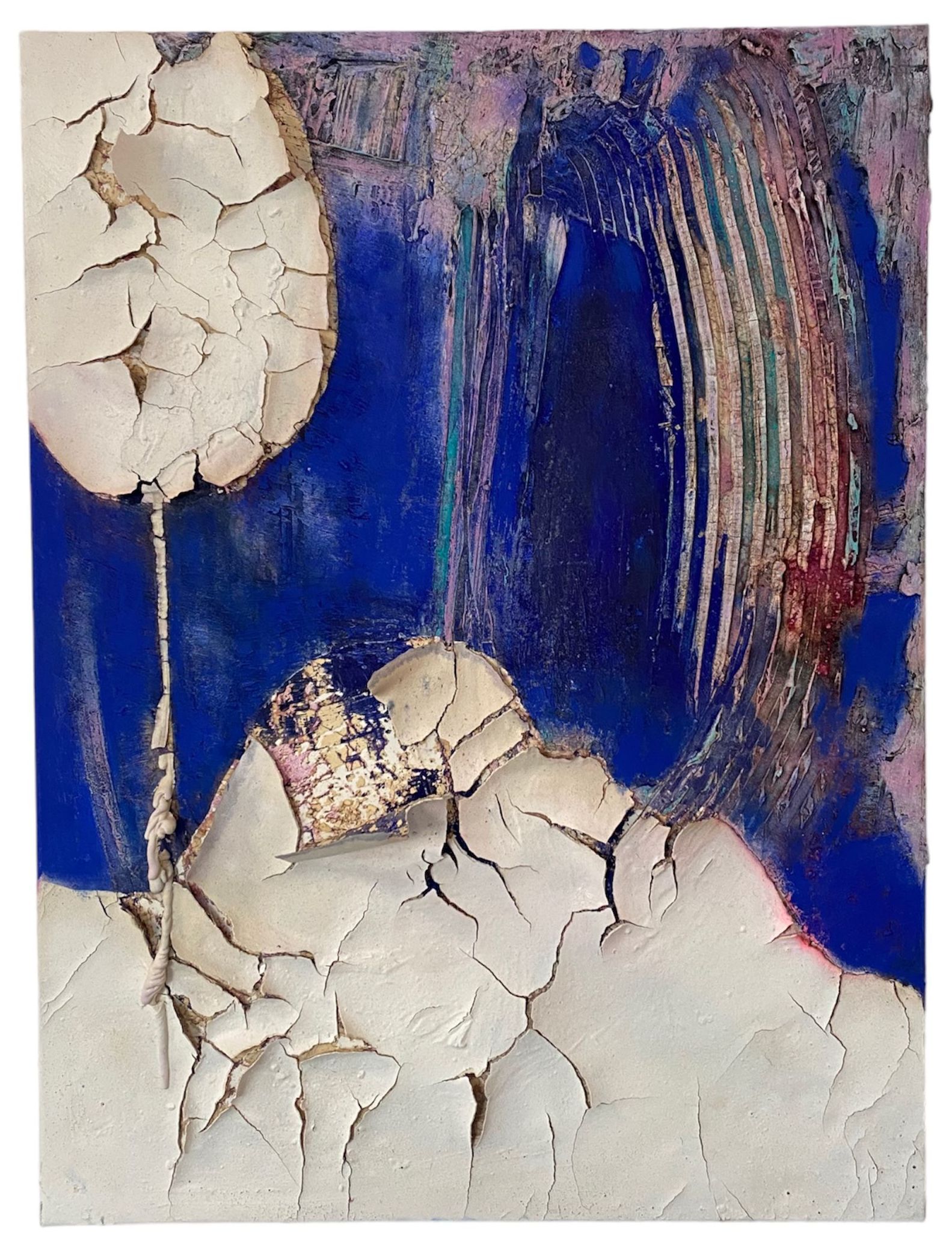 Mixed-Media, Marmormehl, Acryl, Ölpastel auf Holzmalgrund
